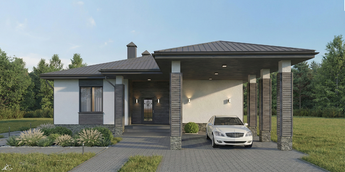 Этот проект дома площадью 170 м² создан в лучших традициях современной европейской архитектуры — когда пространство работает на комфорт, приватность и качество жизни. Планировка дома выстроена вокруг центральной общественной зоны, где гостиная с камином становится сердцем дома. Просторное помещение плавно переходит в кухню-столовую, формируя единое светлое пространство для семейных встреч и приема гостей. Большие проемы связывают интерьер с окружающим ландшафтом, а выход на просторную террасу превращает её в естественное продолжение жилого пространства в теплое время года. Особое внимание уделено личной зоне хозяев.