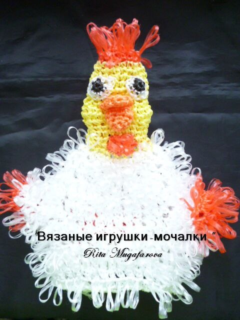 Петушок вязаный из полипропиленовой нити,крючком номер 2, в виде рукавички .