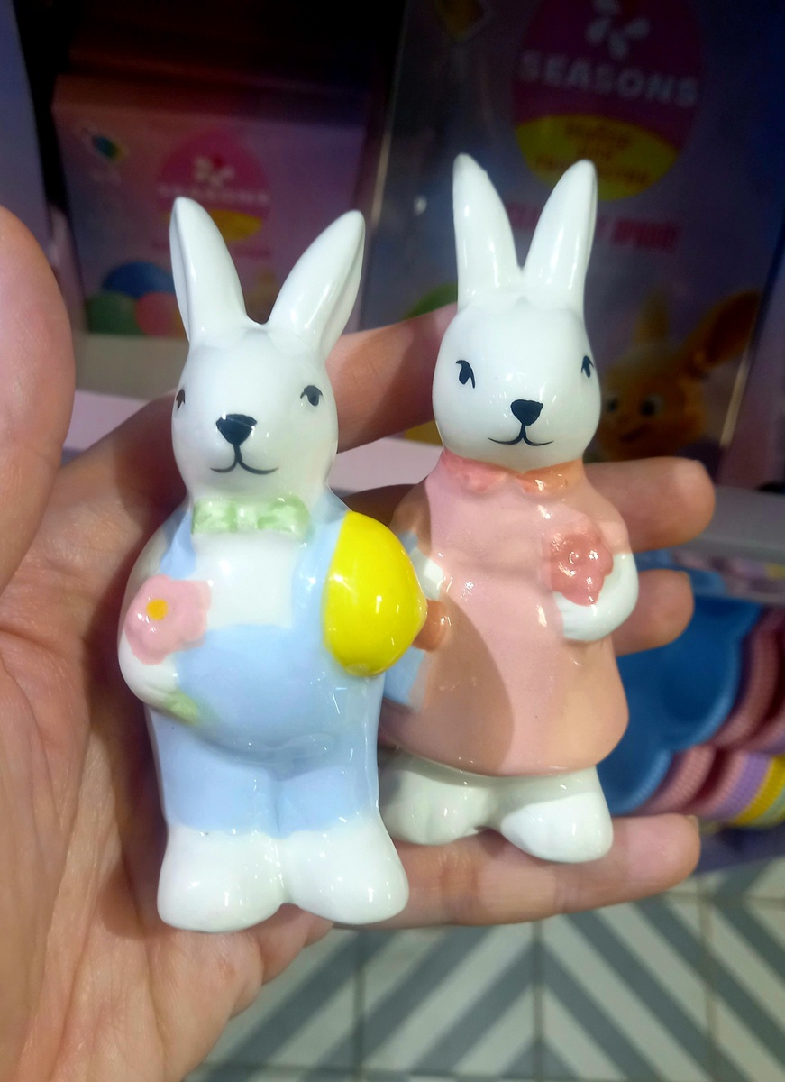 Цена мне не понравилась. 250 рублей за штуку. Ладно хотя бы за пару. И то после Пасхи , как и в прошлые годы, обязательно будут скидки и этих зайчиков.