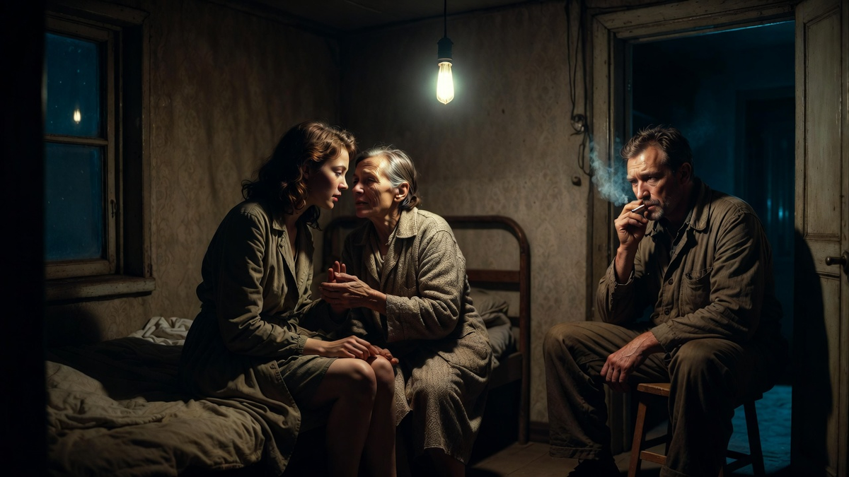 Они проговорили до самого утра. В маленькой комнатушке, где пахло сыростью и дешёвым табаком, где на стенах висели выцветшие занавески, а мебель состояла из железной кровати, шаткого стола и табуретки, — в этой каморке происходило самое важное. Две женщины, разделённые войной и судьбой, наконец-то встретились. Елизавета говорила сбивчиво, будто боялась, что её прервут или что время кончится: — Когда меня забрали, я думала — на несколько дней. Ну, допросят и отпустят. Я же ни в чём не виновата. Детей спасала, Юхо помогал, я ничего не скрывала. А они... они смотрели на меня как на врага. Следователь кричал: "Ты с финским офицером спала, предательница!" А я не спала, я любила. Разве это преступление? Вера взяла её за руку, чувствуя, как дрожат худые пальцы. — Потом этап, Воркута. Вагоны для скота, холод, голод. Везли две недели, половина умерла в дороге. Я выжила, наверное, потому что думала о Кате. Каждый день думала, каждую минуту. Представляла, как она растёт, как учится ходить, говори