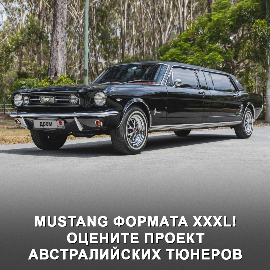 За основу взяли купе Ford Mustang 1966 года, которое в начале нулевых привезли в Австралию, где над ним в итоге и «поглумились». Середину заметно «растянули», задние двери, скорее всего, сделали из оригинальных передних, которые сняли с ещё одного донора. Под капотом — новый 4,95-литровый V8 в паре с 3-ступенчатым автоматом. Внутри — ярко-красный кожаный салон, два дивана (всего восемь пассажирских мест), современная аудиосистема с сабвуфером, раздельные кондиционеры для водителя и пассажиров. Есть и перегородка с электроприводом, как и положено лимузину. Руль, кстати, справа — проект же австралийский. #дромтачкадня #автомобиль #машина #авторынок #лимузин #ford #mustang