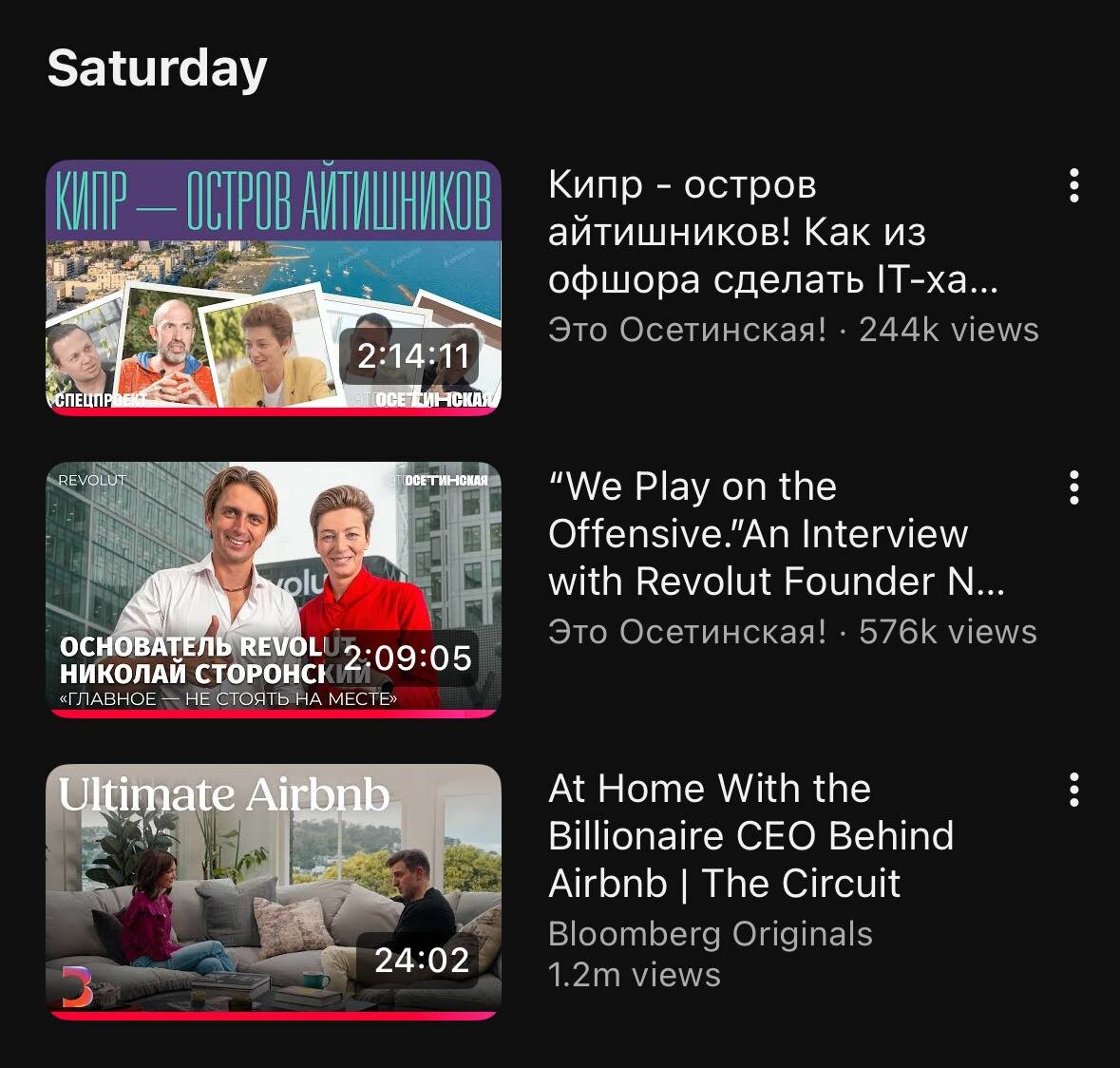 🤵 Я последние пару недель жестко подсела на видосы с фаундерами, CEO на тему бизнеса и AI. Все началось с поста про интервью с основателем Revolut Николаем Сторонским. Дальше мне захотелось узнать мышление других мировых лидеров, и пошло-поехало В основном, на подкастах обсуждают, что нас ждет в 2030, 2035, 2040. Но уже в этом году прогнозируют, что появится AGI - Artificial General Intelligence. Если не в этом, то точно в следующем. Он будет умнее всех нас. К 2100 году один из экспертов по AI-безопасности предсказывает, что либо людей не будет, либо будут существа, которых мы не будем понимать 🍕 Из крутого на текущий момент - на США в гугле раскатана фича "Have AI call". Вы можете загуглить ближайшие рестораны, нажать эту кнопочку - через несколько минут вам на почту придет отчет, в каких ресторанах есть свободные места, а до каких агент не дозвонился Есть агенты, которые режут рилсы. Или гуглят по видосам, когда не можете вспомнить, где слышали цитату. А из особо крутого я узнал