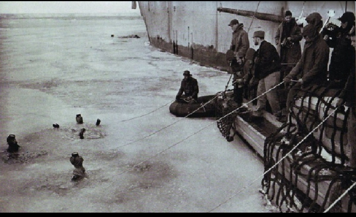 Прежде, чем инопланетяне атаковали эскадру, американцы успели высадить группы для проведения наземных и подводных поисков. Аквалангисты были военными диверсантами. Что они искали под водой? Навряд ли, они погружались, чтобы испытать только что изобретенные новые кислородные баллоны и маски. Боевые пловцы- диверсанты, подрывники изучали пингвинов и китов? Думаю, что нет.