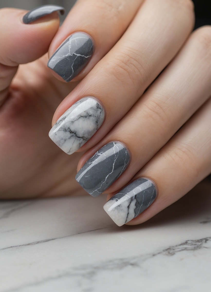 Серые оттенки: палитра и сочетания для мраморного маникюра