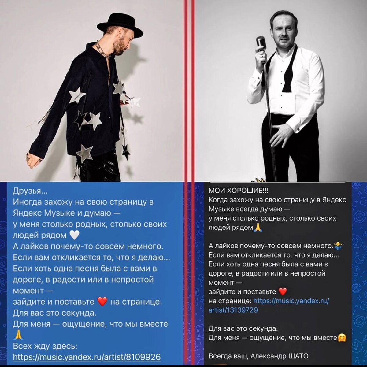 ! Приятно, что коллеги по творческому цеху уже цитируют меня дословно. Возможно, и творения Саши такие же «уникальные», как и тексты на его странице. Так пожелаем же артисту творческой энергии! (Надо послушать Сашу, может и тексты песен он ворует у меня) 📱 Евгений ОКунев