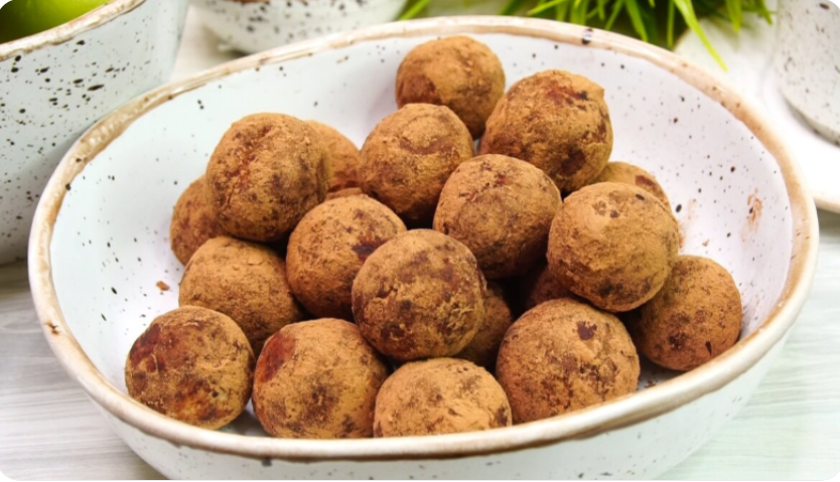 - Экспериментируйте с обвалкой. Какао — это классика, но можно обвалять шарики в кокосовой стружке, измельченных орешках, кондитерской посыпке или даже в молотом печенье. Каждый раз будет новый вкус и дизайн.