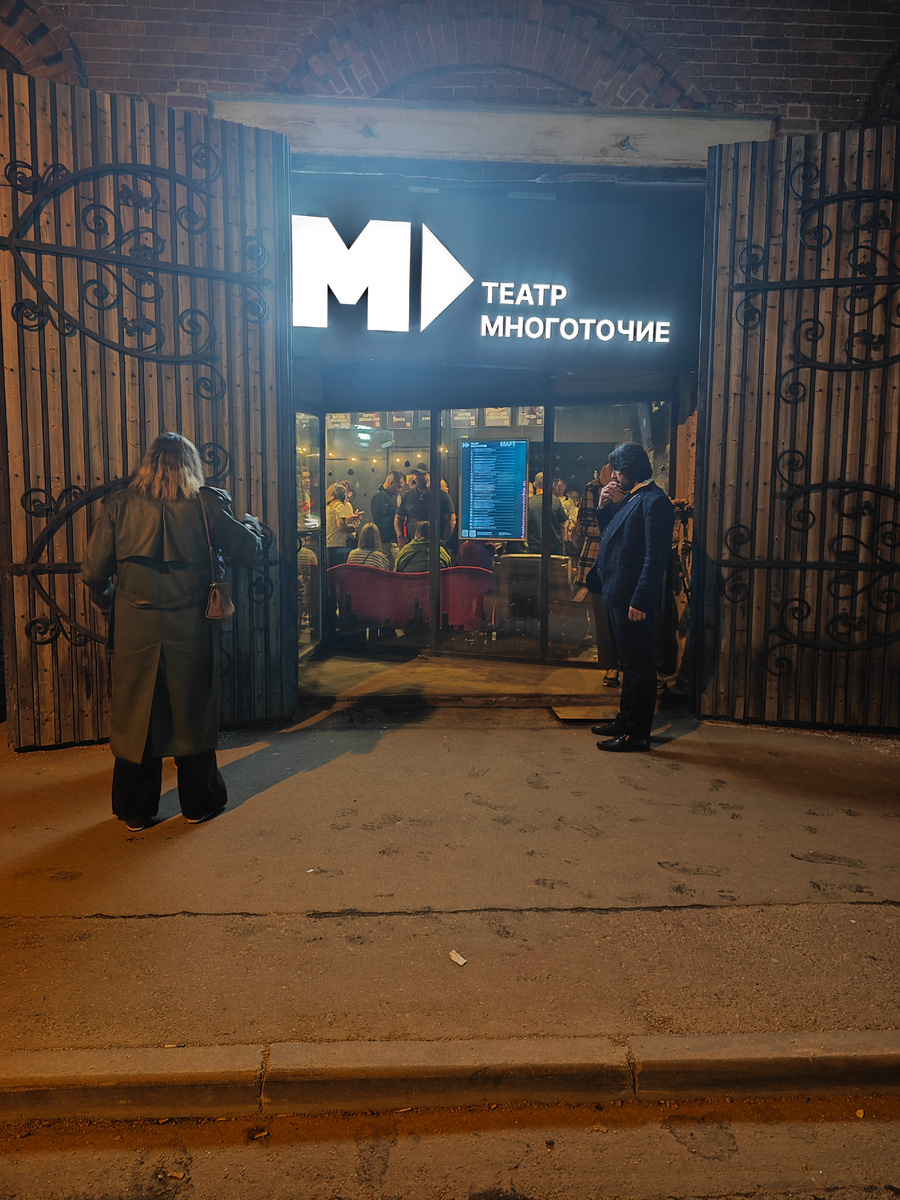 Как я уже упоминал в предыдущих записях, в Москве есть единственный "ночной" театр "Многоточие". Только там некоторые постановки начинаются в 21.30. И я вполне успеваю после учёбы.