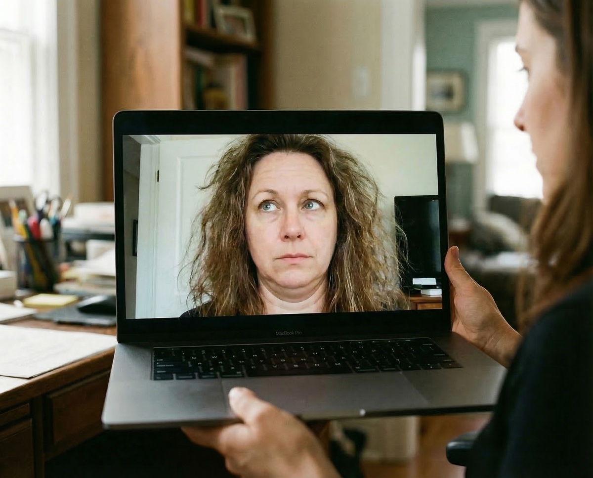 2. Ловушка дорогих телефонов Я сравнила картинку с двух своих телефонов. И знаете что? На моем стареньком Vivo V21 (который славился хорошей фронталкой) я выглядела в разы свежее и лучше, чем на новейшем смартфоне за существенные деньги, который неплох в других отношениях. На собеседование я выбрала именно старый.