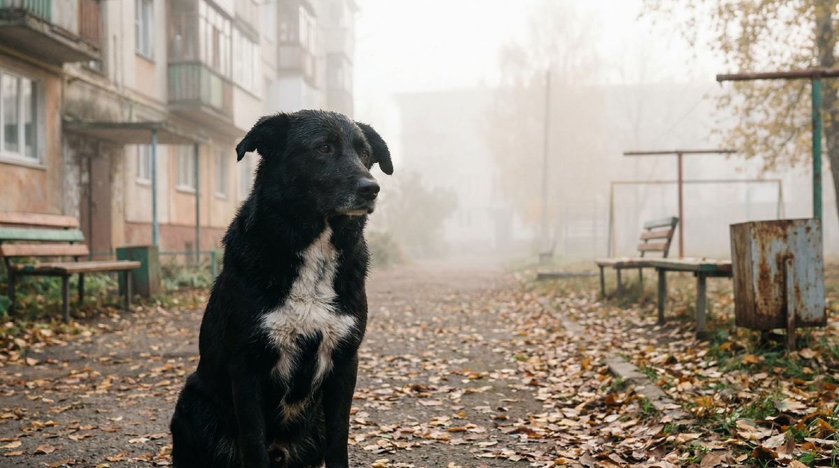 Я увидел его ещё издали – тёмный силуэт на фоне серого забора. Он не лаял. Просто сидел и смотрел, как я иду. А потом встал – медленно, с усилием – и пошёл навстречу. Не бежал. Шёл. Лапы двигались осторожно, будто каждый шаг требовал решения.