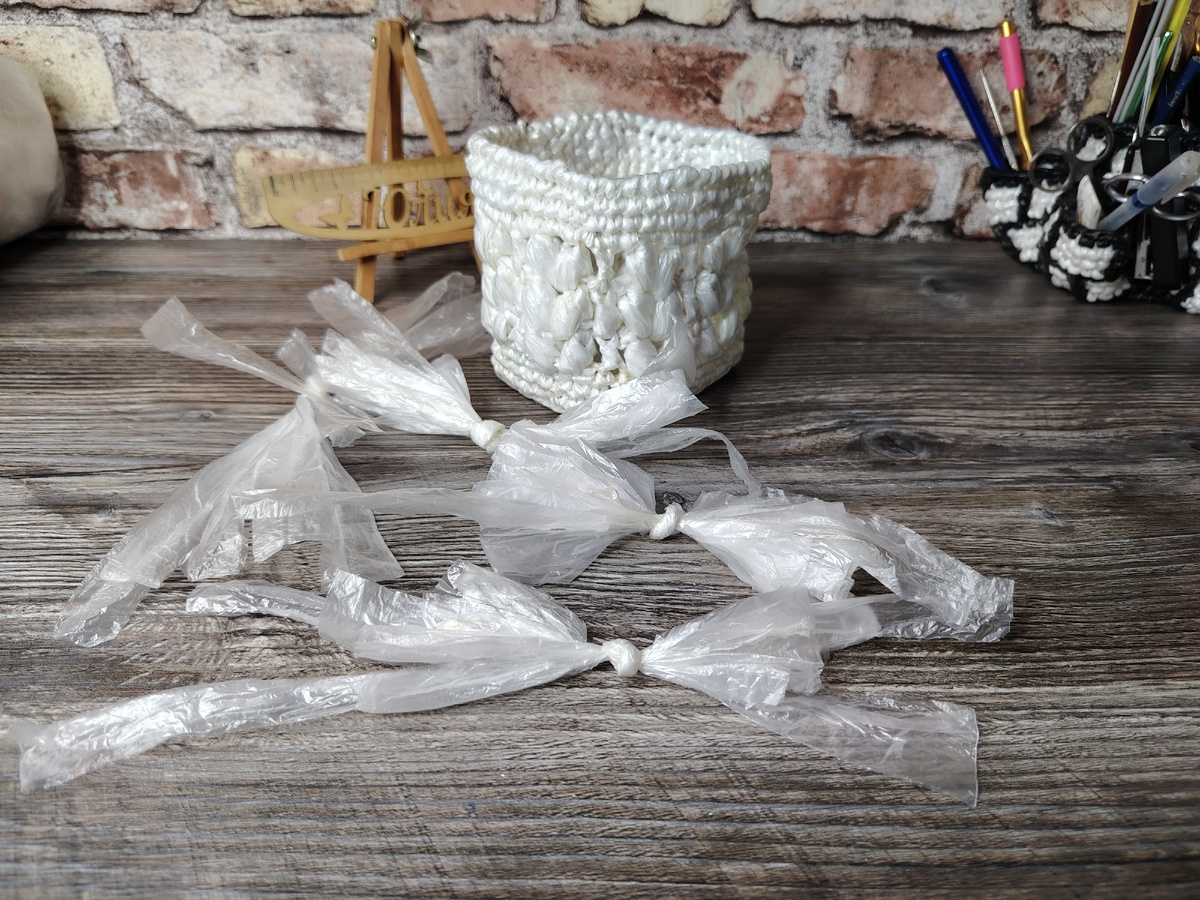 А вы пока можете посмотреть сериал по вязанию из бэушных пакетов кашпо для дома или дачи