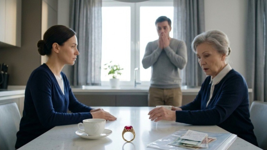 Свекровь медленно протянула руку и забрала кольцо со стола. Ее пальцы дрожали. Она надела его на палец, не поднимая глаз.