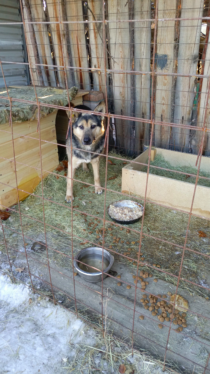 Ещё надо придумать как Кольку вывести из вольера и временно посадить на цепь. Он охотно берёт еду с руки, но дотрагиваться до себя не даёт.🤔