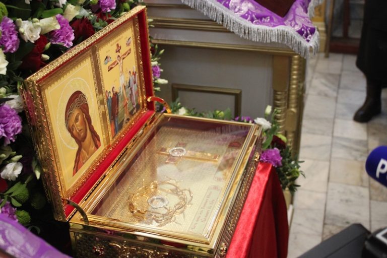 14 марта в Саранске встретили одни из величайших святынь христианского мира: ковчег с частицей Тернового венца нашего Спасителя, Иисуса Христа, и с частицей Животворящего Креста Господня. Святыни были принесены в наш город по многочисленным просьбам верующих и по благословению митрополита Саранского и Мордовского Зиновия. Священные реликвии доставили в старейший храм города — Иоанно-Богословский собор. С колокольным звоном ковчег встречали духовенство, казаки, прихожане храма. В храме перед святынями был совершён торжественный молебен. Все желающие смогли приложиться к драгоценным реликвиям. — Это необыкновенно значимые святыни для каждого православного христианина, — обратился к прихожанам в соборе настоятель Иоанно-Богословского храма протоиерей Алексей Селезнёв. – Это зримые, реальные, вещественные доказательства событий, описанных в Евангелии: земной жизни, страдания и Крестной жертвы нашего Господа, Иисуса Христа. Евангельская история оживает на наших глазах, и мы можем к ней прик