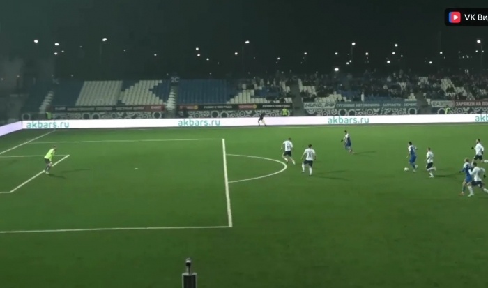 На 70-й минуте отличился Давид Караев. В Набережных Челнах продолжается 2-й тайм поединка 24-го тура чемпионата Первой лиги между «КАМАЗом» и «сине-голубыми». Хозяева поля на 70-й минуте открыли счет. Лучший бомбардир челнинцев Давид Караев точно пробил из-за пределов штрафной площади – 1:0.