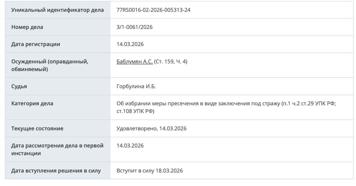 ⚡️ Мещанский суд Москвы заключил Оганеса Шанкояна и Ашота Баблумяна под стражу