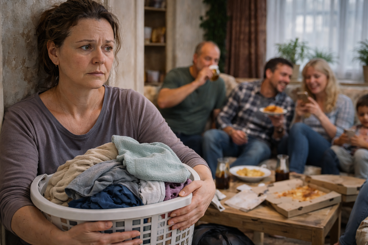 Потому что это она стирает постельное. Она думает, чем кормить. Она убирает ванную за взрослыми людьми. Она перестраивает свои вечера, потому что дома уже не походишь в старой футболке и не посидишь молча с чаем. Она считает продукты и удивляется, как холодильник за три дня пустеет вдвое быстрее.