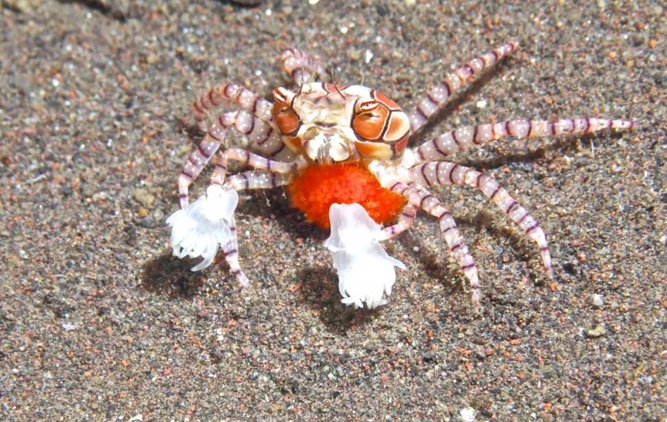 Интересный факт: гавайцы называют этого краба «kūmimi pua», что переводится как «несъедобный цветочный краб». В древности местные колдуны и шаманы использовали этих существ в своих ритуалах, вероятно, впечатлённые их необычным видом и ядовитыми «аксессуарами».