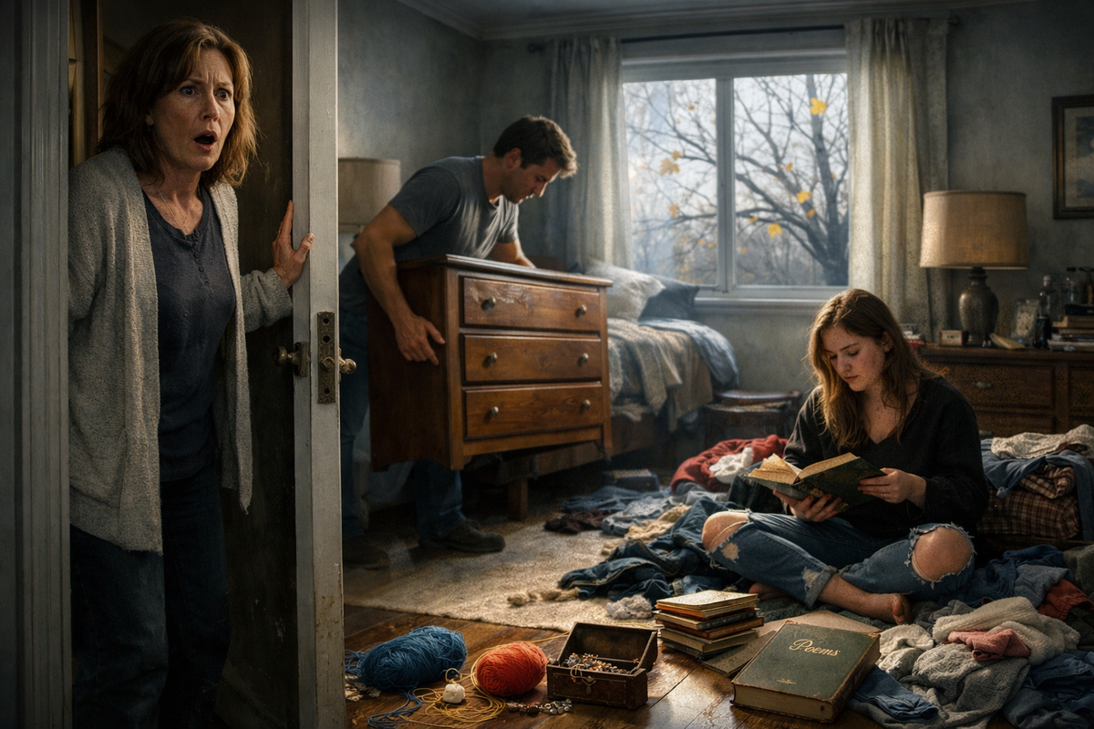 Дверь в мою комнату была распахнута настежь. Андрей стоял посреди неё в старых тренировочных штанах и двигал мой комод к окну. Наташа сидела на корточках у шкафа, перебирала мои вещи и складывала их стопками прямо на пол. На стуле горой лежали мои кофты — вместе, без разбора, шерстяная с хлопковой, нарядная с домашней.