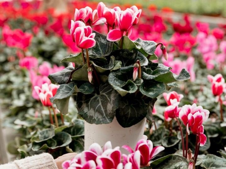 Работать лучше в перчатках: цикламен считается ядовитым растением, поэтому желательно избегать контакта его сока с кожей и слизистыми. Также важно, чтобы перед процедурой растение не