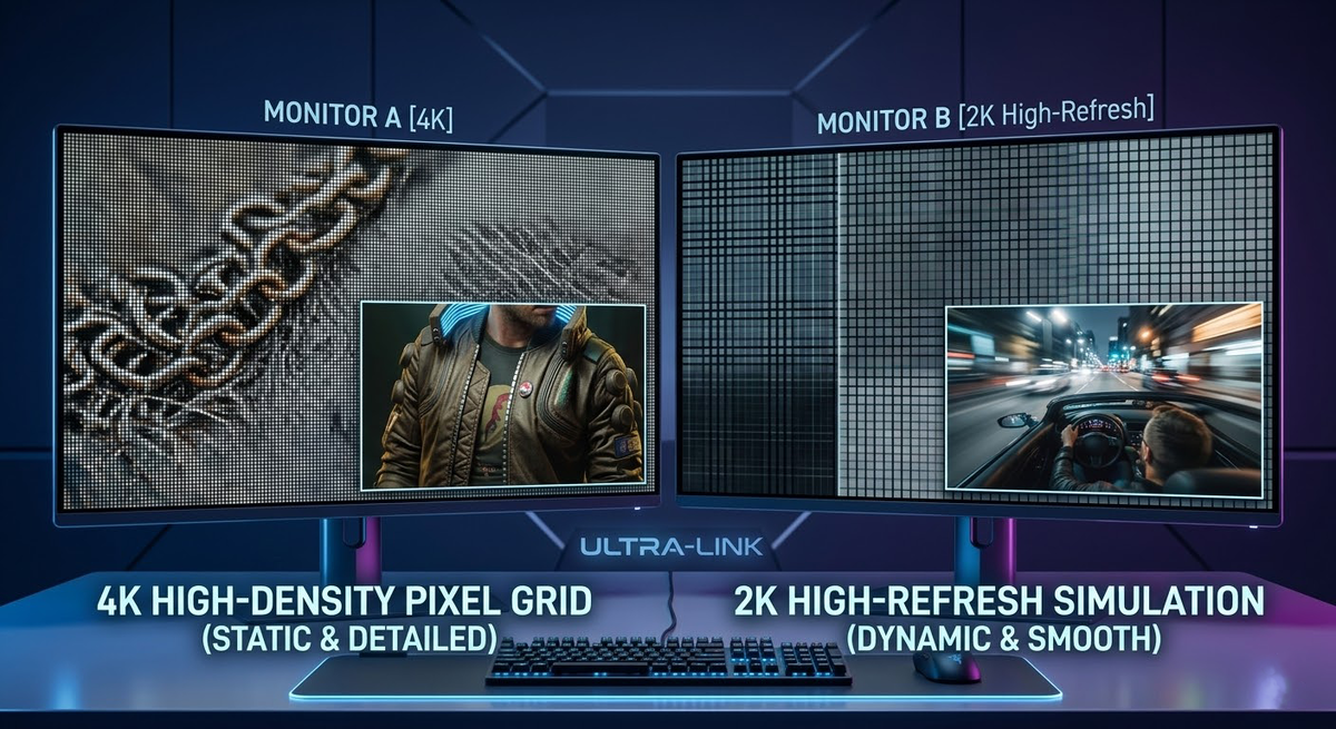 Еще пару лет назад 4К в гейминге считалось уделом только владельцев флагманских ПК. Сегодня мониторы стали доступнее, а технологии апскейлинга (DLSS, FSR 4) — умнее. Но значит ли это, что пора списывать 2К (1440p) со счетов? Давайте разберем, за что вы платите и где кроется подвох. Главное, что нужно знать: разрешение не живет отдельно от диагонали. 4К требует от видеокарты рендерить в 2.25 раза больше пикселей, чем 2К. Совет от меня: Если вы берете 4К монитор, вы автоматически подписываетесь на использование технологий апскейлинга. Хорошая новость в том, что «DLSS Качество» в 4К выглядит даже лучше, чем нативное 2К. Разрыв в цене между хорошим 2К-монитором и бюджетным 4К сократился, но он всё еще есть. Но главная трата — не монитор, а видеокарта, которая сможет его «прокормить». В 2026 году 2К — это выбор прагматика, которому нужна скорость. 4К — выбор эстета, готового жертвовать кадрами ради «киношной» картинки. Переплачивать стоит только в том случае, если ваше железо готово к этой