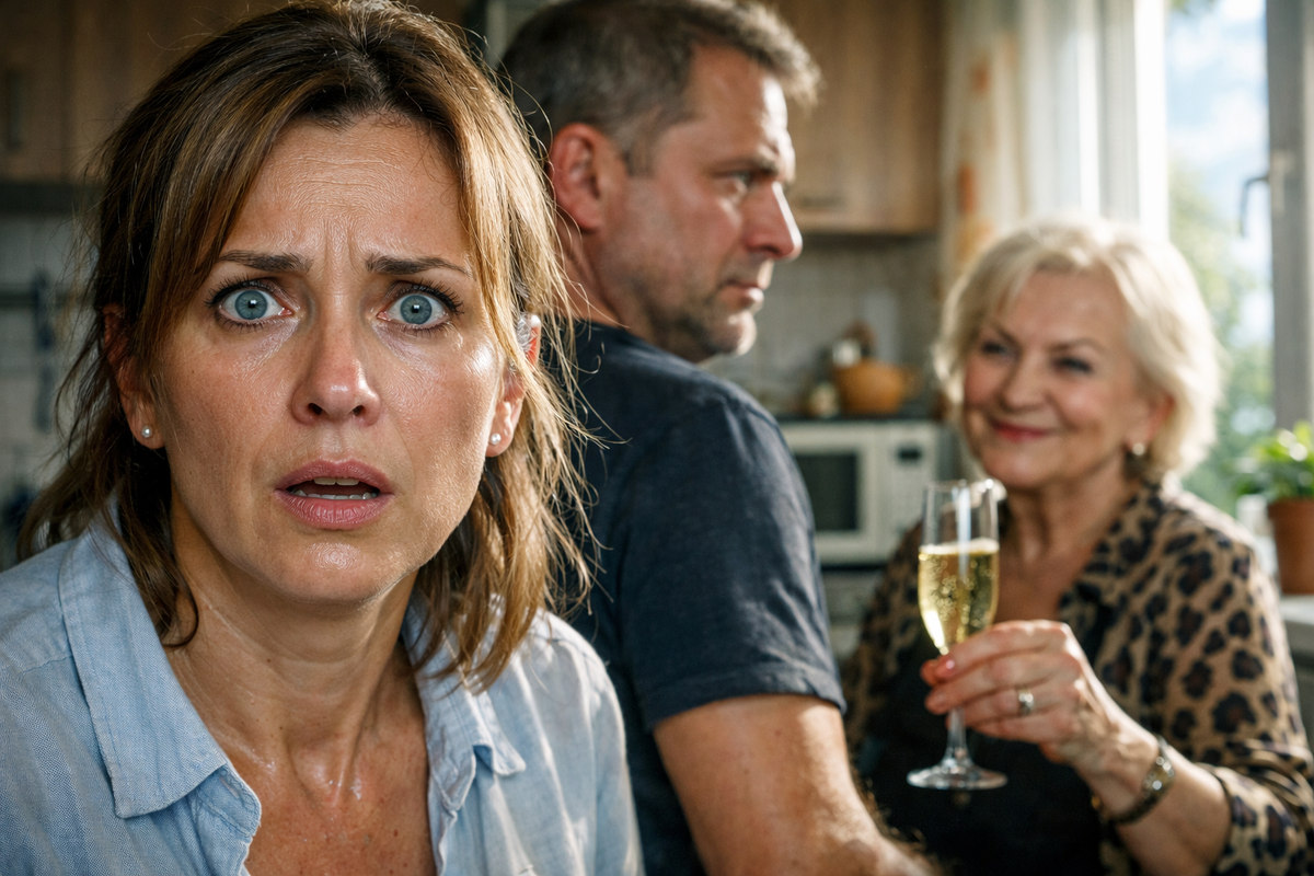 Игорь сидел за столом. Свекровь стояла у плиты. На столе — открытая бутылка шампанского, два бокала с остатками пены.