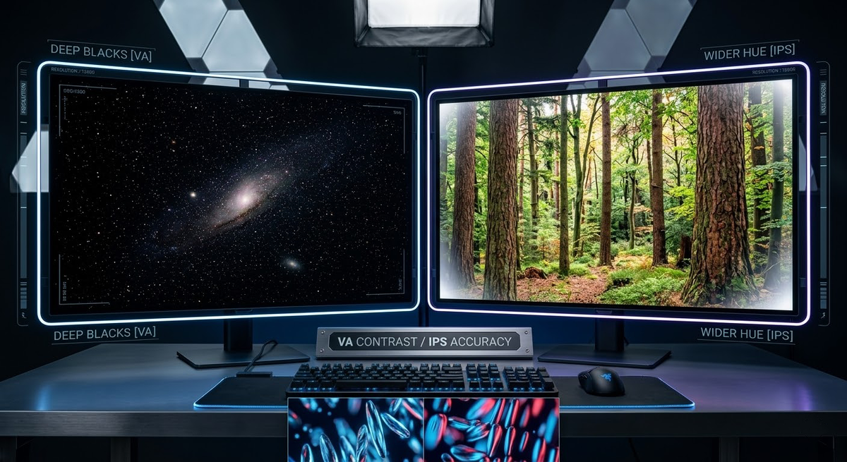 Выбор монитора сегодня напоминает хождение по минному полю. Читаешь характеристики — всё супер: 165 Гц, 1 мс отклик, яркие цвета. Приносишь домой, запускаешь игру, и начинается: либо за быстро движущимися объектами тянутся черные хвосты, либо от «кислотных» цветов через час начинают болеть глаза. В чем причина? Всё дело в технологии матрицы. Давайте разберем главную битву современности: VA против IPS. Матрицы типа VA (Vertical Alignment) работают так: жидкие кристаллы расположены вертикально и при подаче напряжения закрываются очень плотно. В IPS (In-Plane Switching) кристалы всегда лежат в одной плоскости и просто поворачиваются. Болезненные ощущения могут возникать на обоих типах матриц, но причины разные: За годы тестов я вывел простую формулу выбора: Идеального монитора не существует, есть лишь компромисс, на который вы готовы пойти. Хотите скорость и углы — берите IPS. Хотите глубину картинки и контраст — ваш выбор VA. А от какого монитора ваши глаза устают меньше? Замечали ли вы