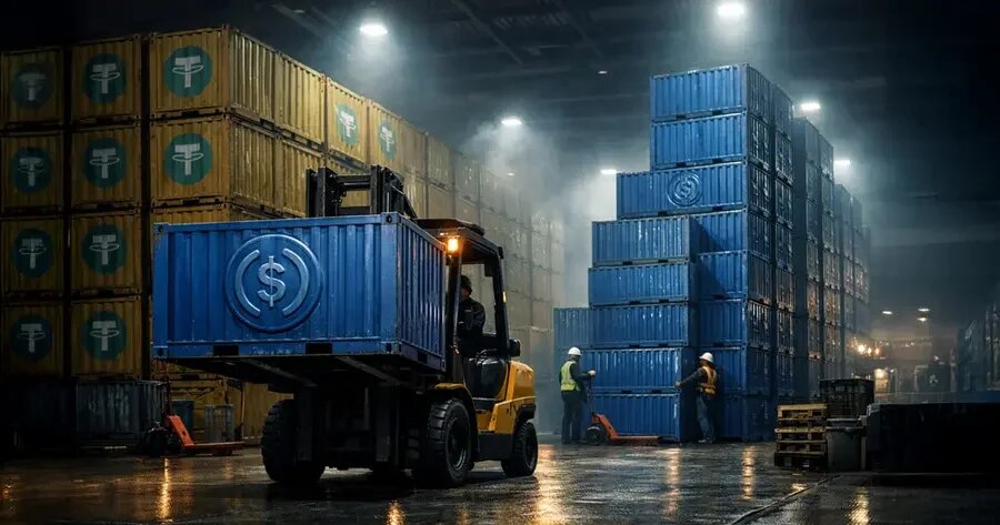 USDT от Tether по-прежнему удерживает наибольший объем долларов в обращении, но состязание смещается от простой гонки за рыночной капитализацией к борьбе за то, какой эмитент будет контролировать каналы, по которым проходят новые капиталы в криптопространстве.
