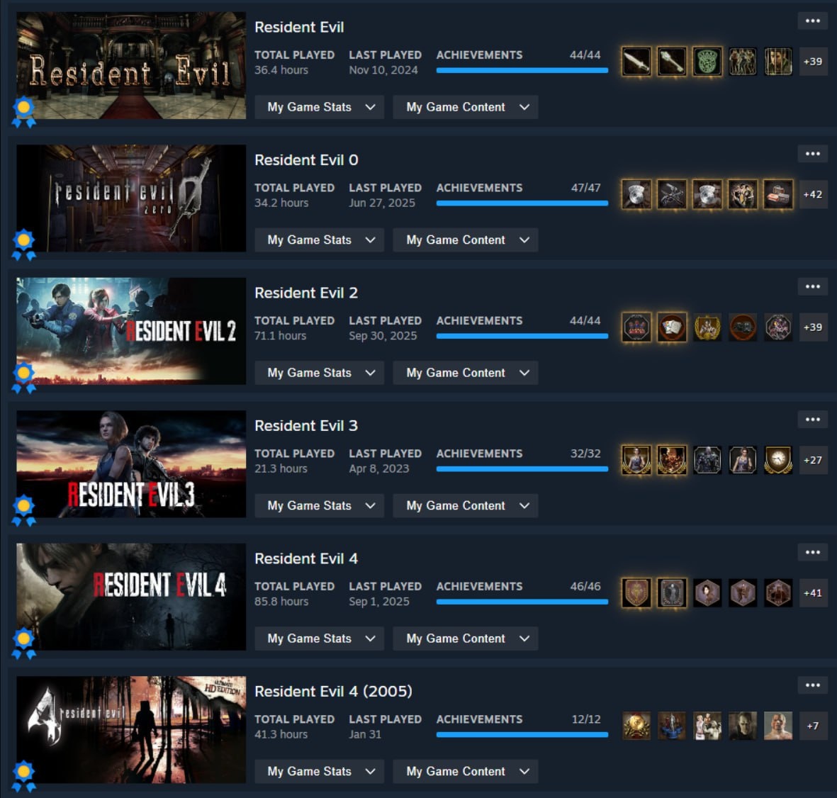 Чувак прошёл все части Resident Evil на 100% в Steam.