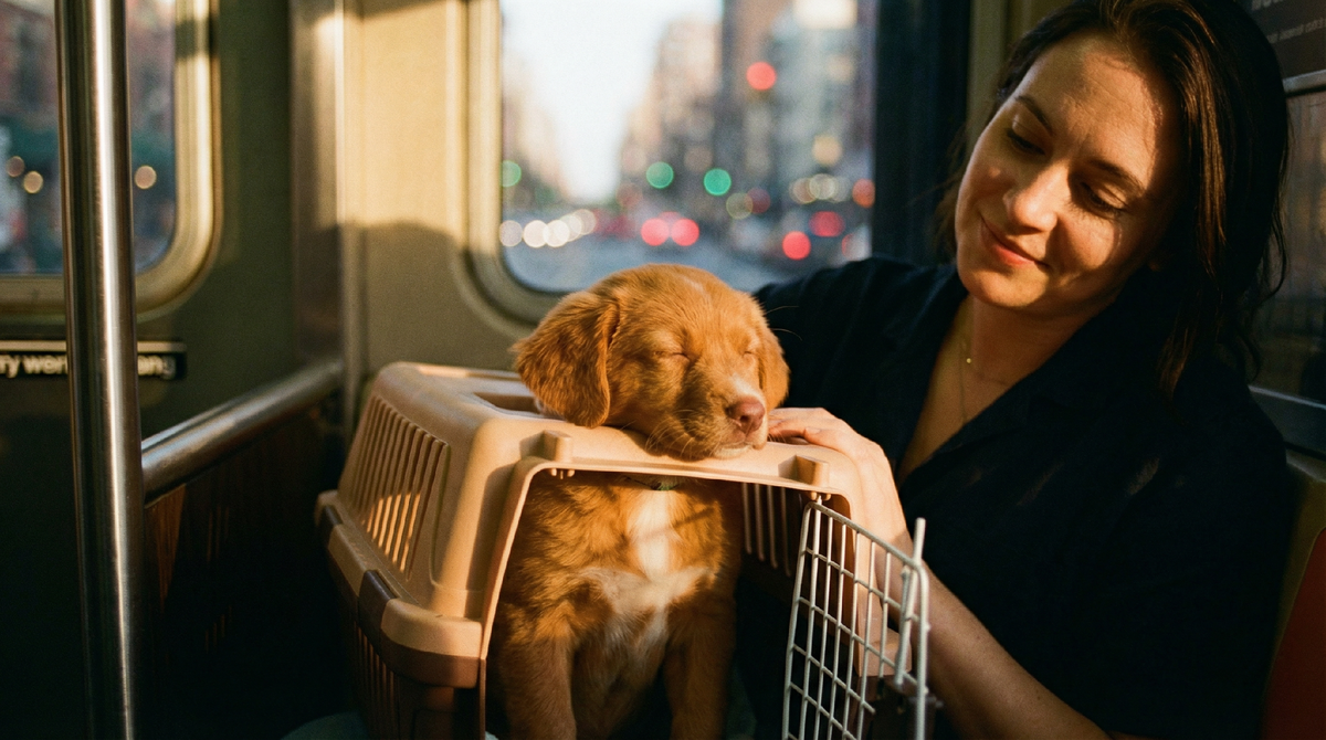 Молодая женщина, ехала из Новосибирска в Москву на поезде через десять дней, согласилась взять щенка за небольшую плату за хлопоты.