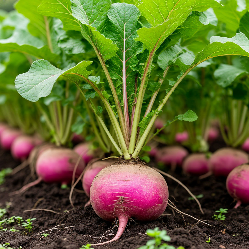 Нельзя обойти вниманием и сорт «Северянка». Это раннеспелая разновидность лобо, которая радует урожаем уже через 60 дней после появления всходов. Корнеплоды у нее розово-малиновые с белым кончиком, форма округло-овальная. Мякоть плотная, сочная, вкусная. «Северянка» хороша тем, что успевает вызревать даже в условиях короткого лета. Ее можно высаживать в два срока: весной для летнего потребления и в начале июля для закладки на зимнее хранение. Она не склонна к цветушности и стабильно формирует урожай.