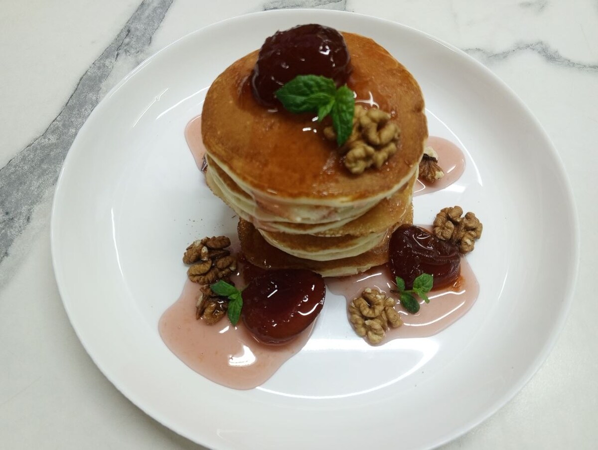 Панкейки - это что-то невероятное! Очень вкусное и сытное! Это даже вкуснее оладьев и блинов! Перед тем, как перейти к приготовлению панкейков, есть несколько важных деталей, которые необходимо иметь в виду, чтобы приготовить вкуснейшие панкейки, а не лепешки. Первое. Все ингредиенты должны быть комнатной температуры. Второе. Белки надо взбить в плотную устойчивую пену: если перевернуть емкость со взбитыми белками, они так и останутся в емкости в том же виде. Третье. Вводить белки в тесто следует очень аккуратно в три приема. Четвертое. Перед жаркой и в процессе жарки панкейков тесто не перемешивать, а аккуратно набирать в черпачок. Пятое. В процессе жарки от плиты нельзя отходить. Лучше считать про себя, через какое время переворачивать панкейк на другую сторону и снимать со сковороды, - пекутся панкейки быстро. Шестое. Готовые панкейки выкладывать в один слой, и только после того, как они слегка остынут, можно складывать их стопочкой. Яйца разделить на белки и желтки. Взбить белки