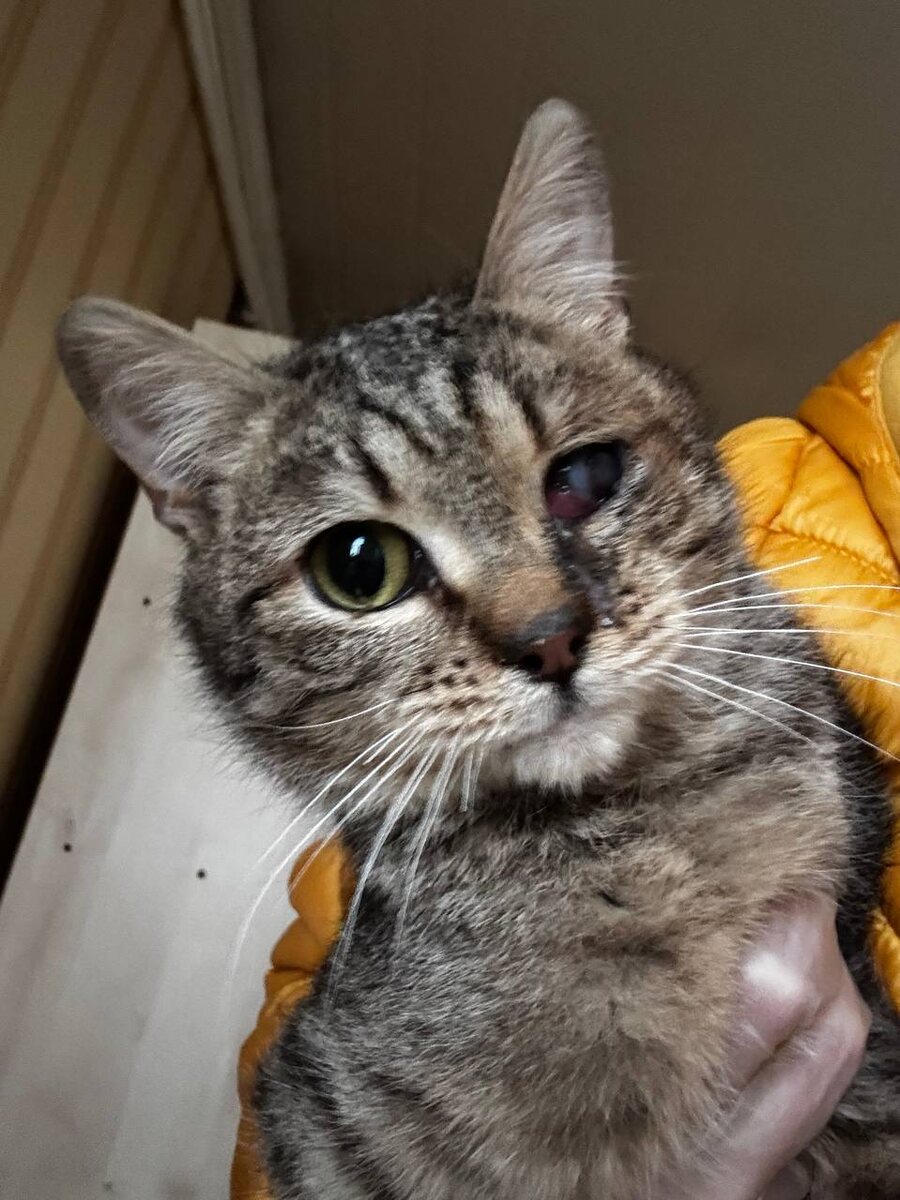 Живет на передержке у Марины котик Антошка. Я забирала его из подвала котенком 4 месяцев , у него был мутный глазик. Мы выполняли назначения, и долгое время глаз был с пленочкой, но спокойный. Последние дни с глазом стало происходить что-то нехорошее. И сегодня отправились к окулисту. У Антошки отслойка сетчатки и припаянная к глазному дну язва хрусталика. Надеюсь правильно сформулировала