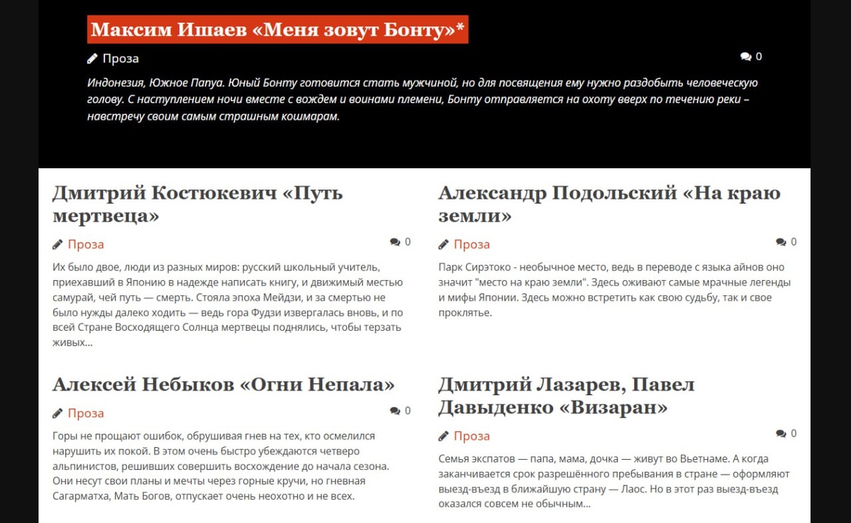 В мартовском номере журнала DARKER читателей ждут 9 рассказов отечественных авторов: Максим Ишаев «Меня зовут Бонту» Индонезия, Южное Папуа. Юный Бонту готовится стать мужчиной, но для посвящения ему нужно раздобыть человеческую голову. С наступлением ночи вместе с вождем и воинами племени, Бонту отправляется на охоту вверх по течению реки – навстречу своим самым страшным кошмарам. Дмитрий Костюкевич «Путь мертвеца» Их было двое, люди из разных миров: русский школьный учитель, приехавший в Японию в надежде написать книгу, и движимый местью самурай, чей путь — смерть. Стояла эпоха Мейдзи, и за смертью не было нужды далеко ходить — ведь гора Фудзи извергалась вновь, и по всей Стране Восходящего Солнца мертвецы поднялись, чтобы терзать живых... Александр Подольский «На краю земли» Парк Сирэтоко — необычное место, ведь в переводе с языка айнов оно значит "место на краю земли". Здесь оживают самые мрачные легенды и мифы Японии. Здесь можно встретить как свою судьбу, так и свое проклят