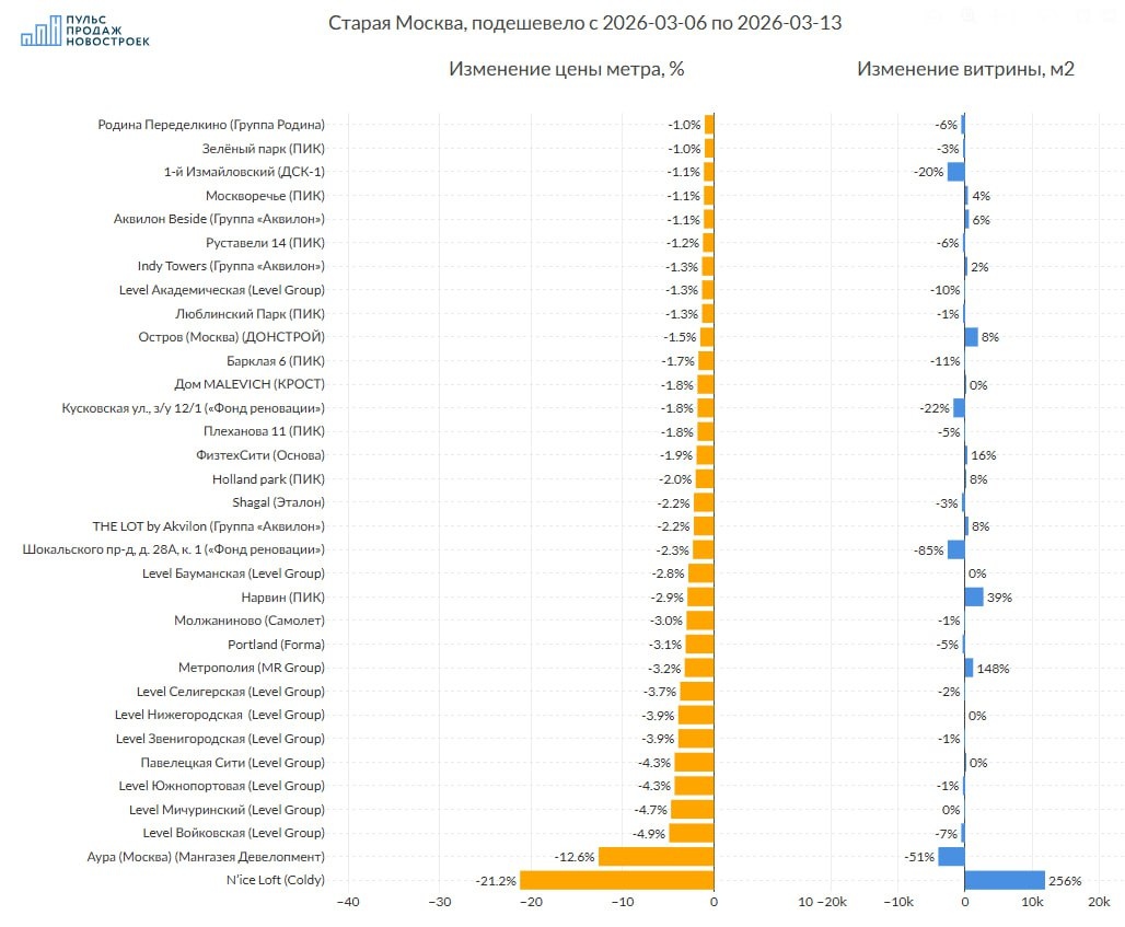 Коротко по динамике в Новой Москве, Старой Москве и Петербурге. Новая Москва 💵 330 200 ₽/м² (+0.5% за неделю) Предложение почти без изменений (-0.2%). Рост: • «Новая Звезда-2» - +10.8% • «1-й Ясеневский» - +4.7% • «1-й Саларьевский» - +4.6% Снижение: • «Ольховый квартал» - –6.5% • «Квартал Западный» - –4.1% • «Цветочные поляны Сити» - –1.9% Старая Москва 💵 502 100 ₽/м² (-0.4%) Предложение +1.2%. Рост: • «Обручева 30» - +11.9% • Кедрова 16 к3 (реновация) - +6.3% • «Квартал на воде» - +5.6% Снижение: • N’ice Loft - –21.2% • «Аура» - –12.6% • Level Войковская - –4.9% Санкт-Петербург 💵 328 200 ₽/м² (–1.0%) Предложение +1.6%. Рост: • «Дефанс» - +6.1% • «Монография» - +4.9% • AVENUE-APART Пулково - +4.7% Снижение: • «ЛСР. Большая Охта» - –9.4% • «Морская миля» - –8.7% • «Измайловский» - –8.1% Мой вывод: рынок продолжает плавную коррекцию. Москва держится лучше, Петербург чуть слабее, но без резких движений - пока это скорее точечные переоценки отдельных проектов. Планируете покупку недвиж