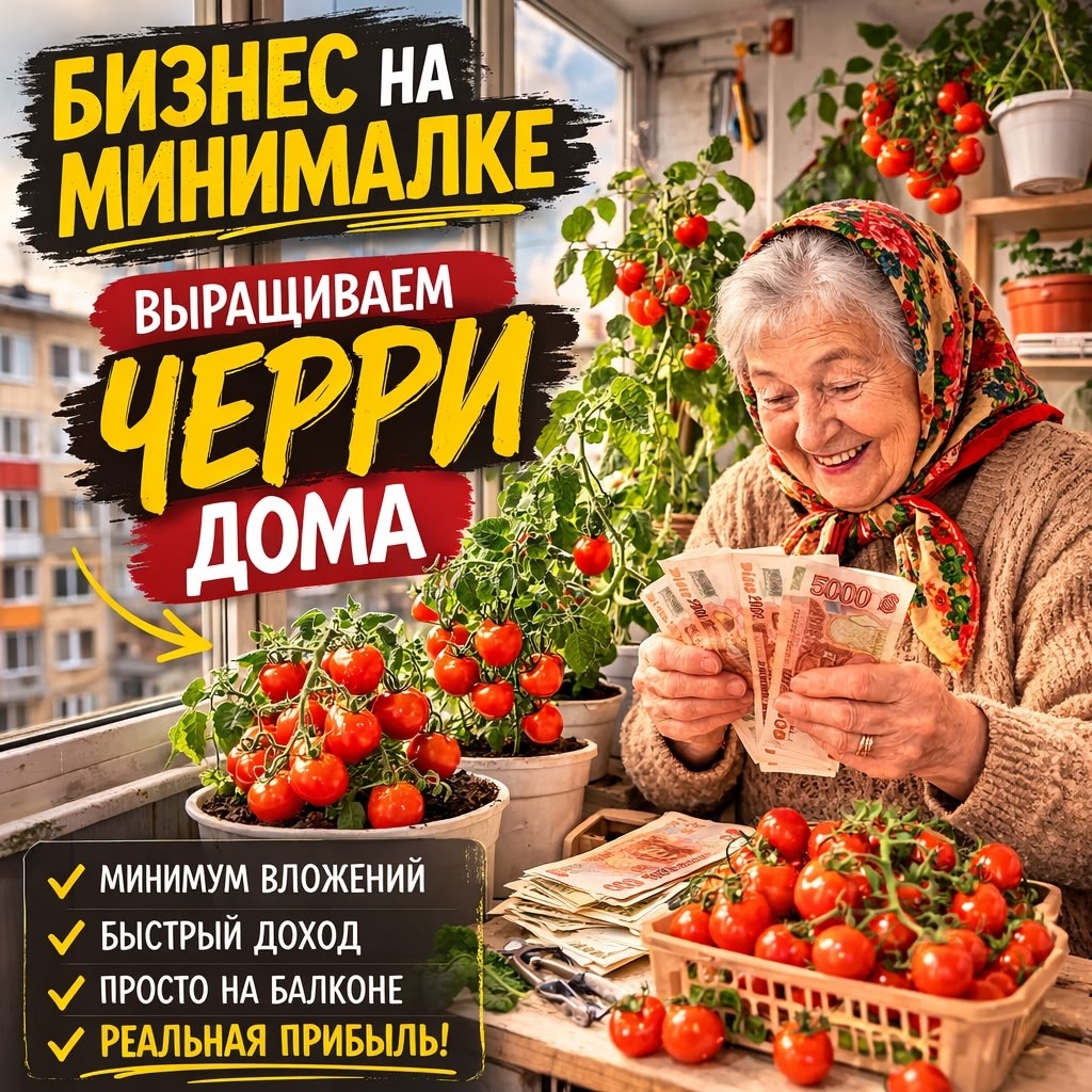 Весна — идеальное время, чтобы попробовать маленький домашний бизнес. Многие думают, что для заработка на овощах нужна теплица, участок земли и большие вложения. Но на самом деле начать можно даже на обычном балконе. Один из самых простых вариантов —выращивание томатов черри в горшках. Это компактные помидоры, которые отлично растут в квартире и дают хороший урожай. Самое приятное — для старта не нужны большие деньги. Иногда достаточно 1000–2000 рублей, чтобы начать. Почему именно черри? Сегодня расскажу о интересной Бизнес идеи! Черри идеально подходят для домашнего выращивания. У них есть несколько преимуществ: - компактные кусты - быстрое созревание - красивый внешний вид - высокая цена по сравнению с обычными помидорами Многие люди любят покупать домашние, натуральные помидоры, особенно если знают, что они выращены без химии. Черри можно продавать: - соседям - коллегам на работе - в домашних