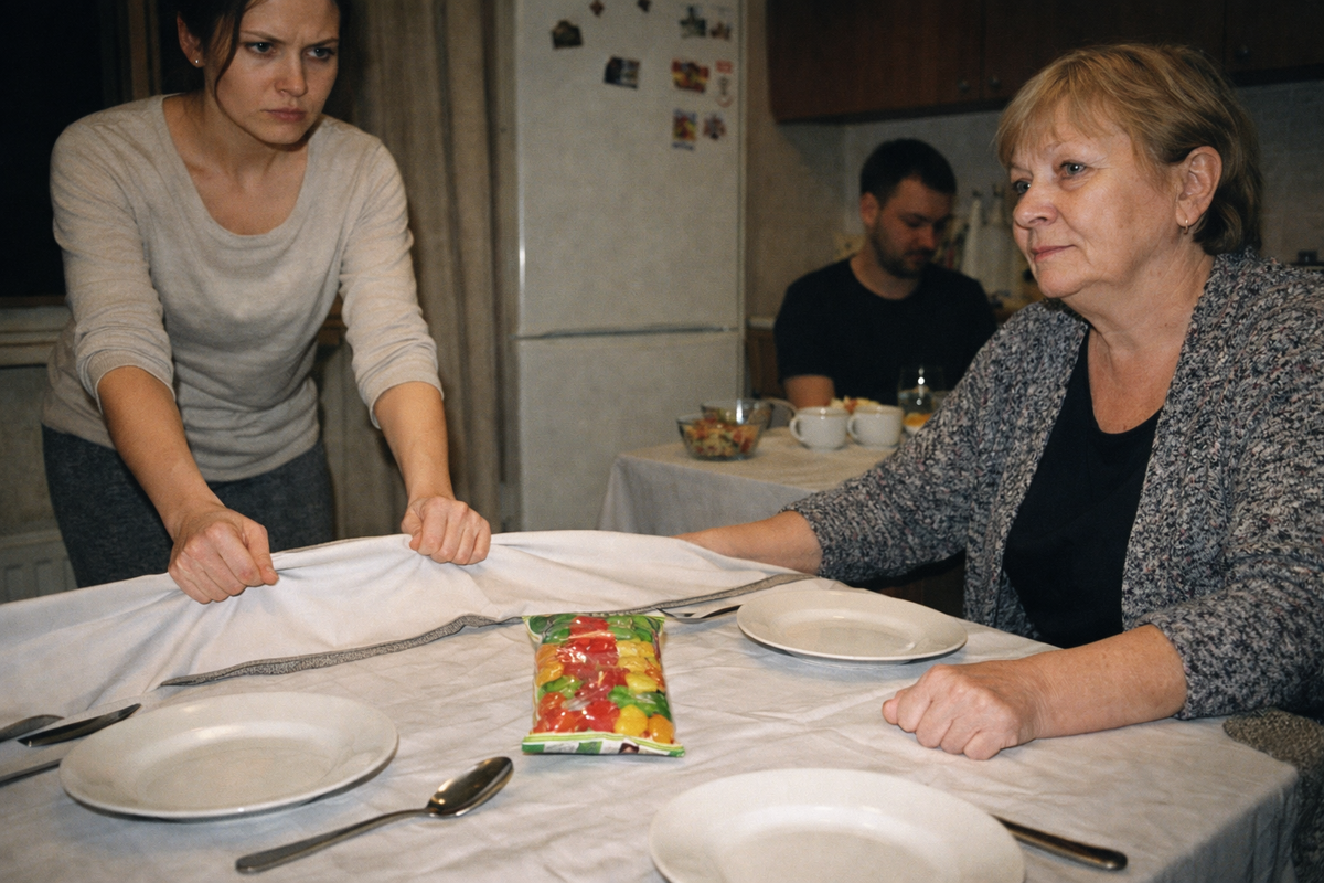 Я посмотрела на пакетик. Двести граммов мармелада за сто девять рублей. И почему-то именно от этого пакетика у меня что-то щёлкнуло внутри. Не от котлет, не от шести тысяч, не от Сашиного “ну заедут”. От этой дешёвой липкой подачки вместо нормального человеческого участия.