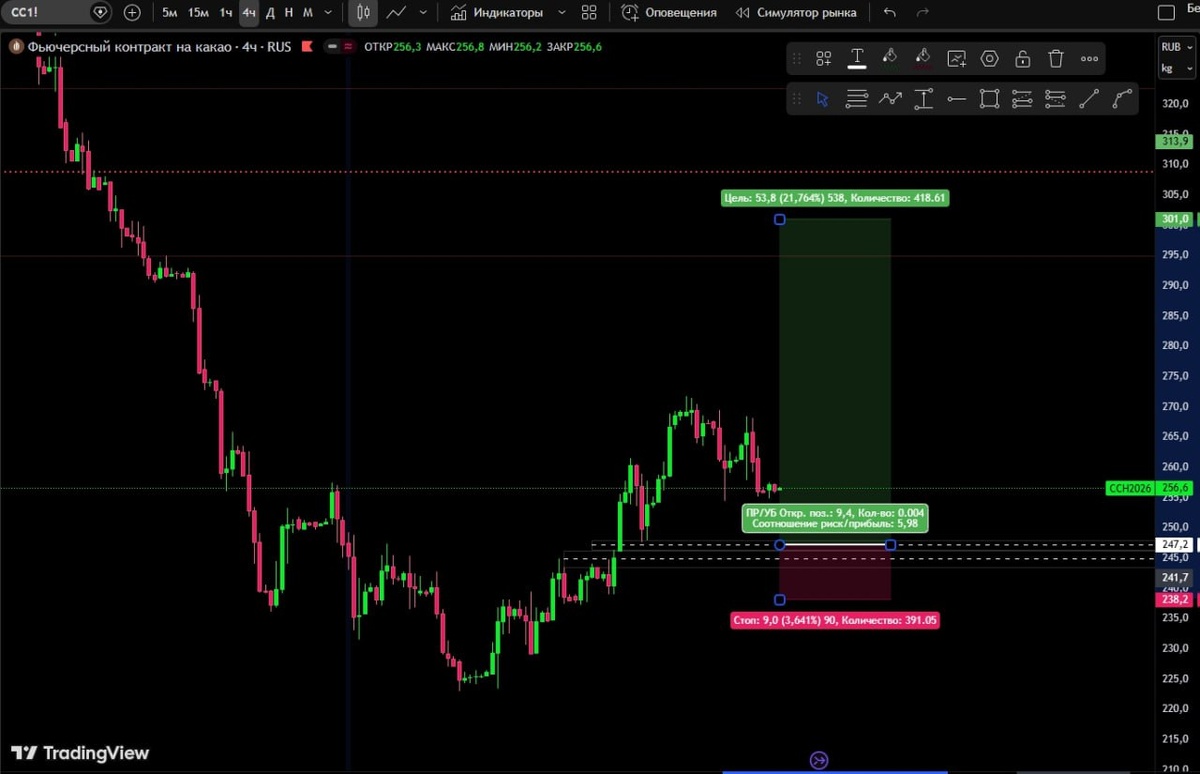 🟢Сделка LONG риск 1% от депозита. 🎯Вход: 247,2 пт ❌Стоп: 238,2 пт 💰Тейк профит: 301 пт. ✍️ Актуально: До отмены ⚖️Соотношение риска к прибыли - 1 к 6 🛑Стоп закрывается при достижении, либо после закрытия дневной свечи за точкой входа. 🔔Сопровождение и отмены по сделкам в чате ➡️ https://t.me/+-MkEbPvJt4QzZDli 📌Посмотреть статистику моей публичной торговли 👉 : https://docs.google.com/spreadsheets/d/1NtCGHbEH8bAoy_93Cex3V60iqw7tfRfS5D0LRGDpqkw/edit?gid=922016881#gid=922016881 🫶Поддержать канал голосом: https://t.me/boost/sistemnyi_treiding_na_birge