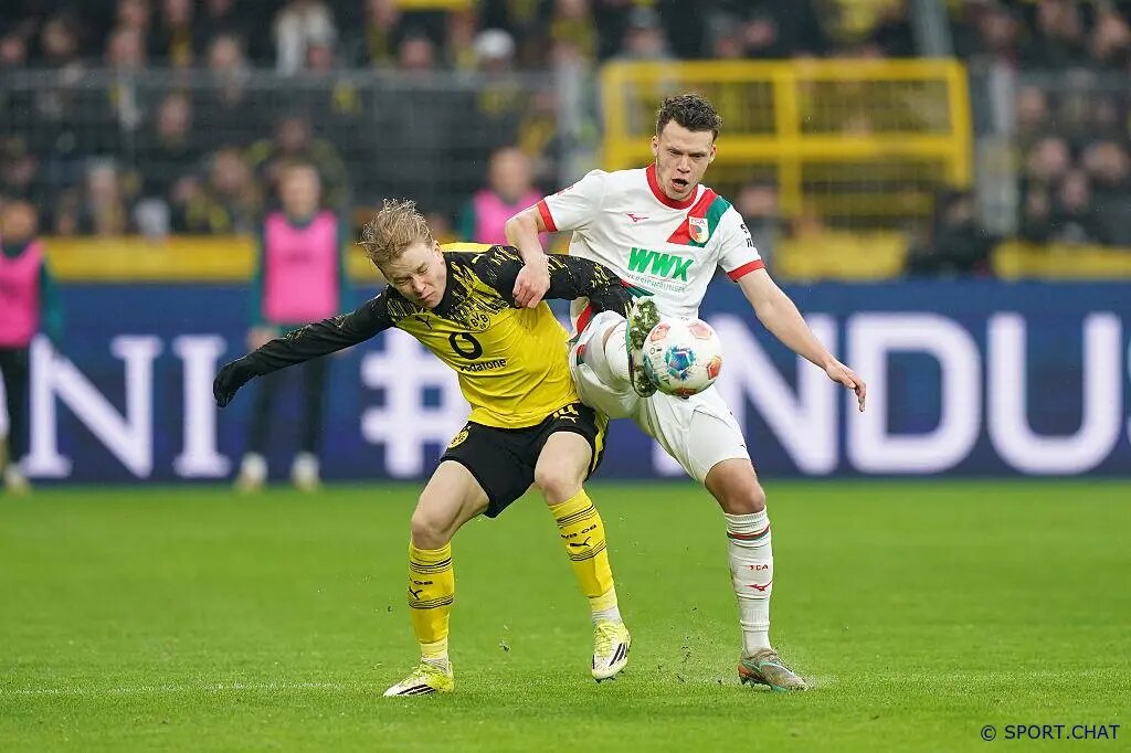 Дортмундская «Боруссия» уверенно победила «Аугсбург» в домашнем матче Бундеслиги. Встреча на «Сигнал Идуна Парк» завершилась со счётом 2:0 в пользу хозяев. ⚽️ Ход матча Дортмундцы активно начали игру и уже в дебюте сумели открыть счёт. На 13-й минуте Карим Адейеми получил отличную передачу, вышел один на один с вратарём и хладнокровно отправил мяч в сетку — 1:0. После гола «Боруссия» продолжала контролировать игру и регулярно создавала моменты у ворот Финна Дамена. До перерыва хозяева несколько раз были близки ко второму голу, но мяч то попадал в перекладину, то выручал голкипер гостей. Во втором тайме давление «шмелей» принесло результат. На 59-й минуте после подачи с углового Лука Реджани выиграл борьбу в штрафной и ударом головой отправил мяч в правый угол ворот — 2:0. В концовке «Боруссия» могла увеличить преимущество, однако Гирасси и Адейеми не реализовали свои моменты. 📊 Ключевые факты 🔥 Итог «Боруссия» провела уверенный матч и без особых проблем взяла три очка. «Аугсбург» поч