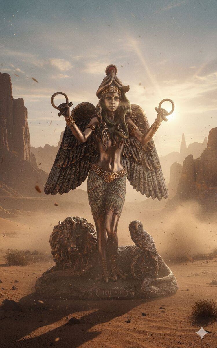 . Дни Гекаты. Курс Врата Иштар/ Инанна . Когда-то, в те времена, когда боги ходили среди людей, Инанна, царица Небес и Земли, услышала зов. Он шёл не сверху — оттуда, где ждали молитв. Он шёл не сбоку — оттуда, где ждали побед. Он шёл из самого центра земли, из Великого Низа, из Подземного царства её сестры — Эрешкигаль. Зов был глубок, как дыхание спящей земли. Он был настойчив, как биение сердца, которое не спрашивает — хочешь ли ты жить. Он просто бьётся. Инанна стояла на пороге своего храма. В руках — жезл власти. На голове — корона света. Грудь закрыта пластиной, которая хранит сердце. Она была Царицей. Воительницей. Победительницей. А зов звал — в темноту. В место, где нет побед. Где нет света. Где нет имени. Инанна думала: — Может, не слышать? Может, остаться здесь, в тепле, в свете, в любви своих? Быть просто женой. Просто матерью. Просто дочерью. Разве этого мало? Но зов возвращался. Он приходил в снах. Он приходил в тишине между ударами сердца. Он приходил в тот миг,