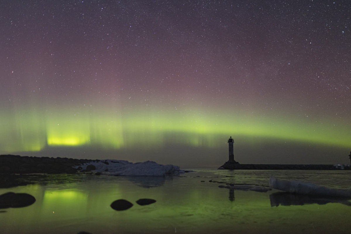 Северное сияние, Млечный путь и маяк Вуохенсало
