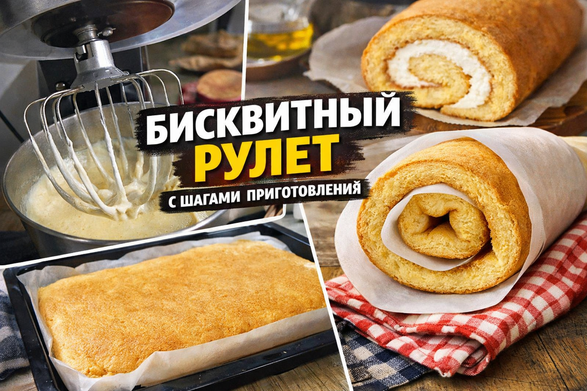 Иногда бывает ситуация: гости уже почти на пороге, дети просят десерт, а времени на торт совсем нет. В моём случае это просто два дня рождения подряд, и делать два полноценных торта нет ни сил, ни времени. Рецепт когда-то давно дала мне подруга. Она сказала: «Когда нужен торт быстро — делай рулет». И этот бисквитный рулет с малиной и кремом наконец-то дождался своего выхода в свет. А ещё он вызывает у меня улыбку, потому что первый раз я делала такой рулет ещё будучи студенткой. Тогда во всех рецептах советовали сворачивать рулет в полотенце. Я так и сделала… и в итоге рулет получился слегка «волосатым» — всё полотенце отпечаталось на бисквите 🤣 Может быть именно поэтому я так долго откладывала его приготовления. Но я нашла способ намного проще — без полотенца, и рулет получается идеальным. • 5 яиц • 120 г сахара • 120 г муки • 1 ч. л. ванильного сахара • щепотка соли 1. Разогрейте духовку до 180°C. 2. Яйца, сахар, ваниль и соль взбивайте 6–7 минут. Масса должна стать очень светлой и