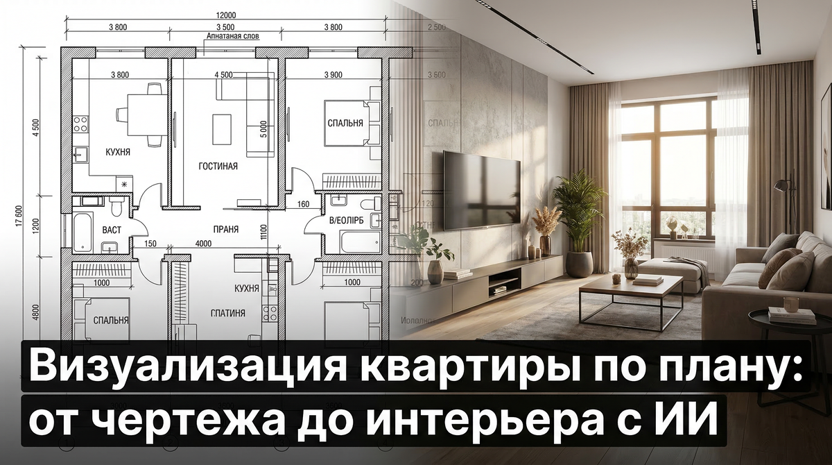 Визуализация квартиры по плану застройщика перестала быть привилегией тех, кто может позволить себе дизайнера за 200 000 рублей. С помощью ИИ весь путь от чертежа до готового интерьера занимает 10 минут: