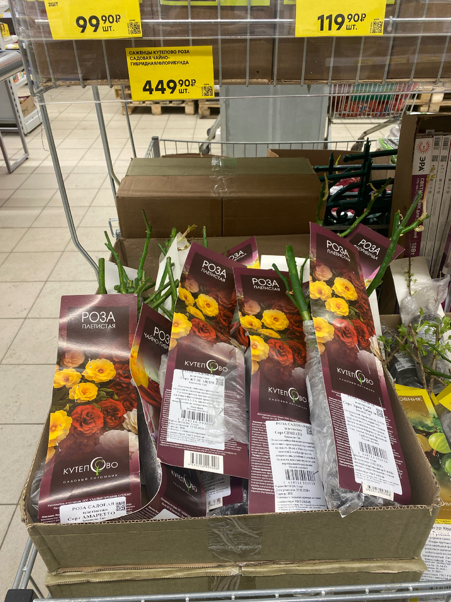 В продаже саженцы роз. Роза плетистая садовая чайно-гибридная. Цена 449 рублей.