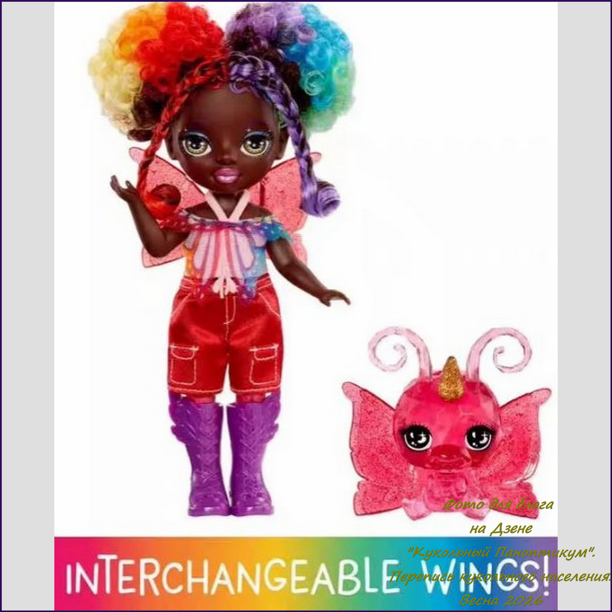 Меня зовут Эрика, и я рада видеть вас на страницах блога «Кукольный Паноптикум». Приветствую моих постоянных читателей, которые знают толк в коллекционировании, и всех случайных гостей, которые, возможно, просто искали вдохновения и наткнулись на этот уголок красоты. Сегодня у нас настоящий праздник цвета! Я решила показать вам двух совершенно разных, но одинаково потрясающих красавиц, которые доказывают, что мода — это искусство самовыражения. Первая героиня нашего обзора — это настоящий фейерверк позитива! Перед нами Sunny Anderson (из второй серии Rainbow High). Посмотрите на эту прическу! Это просто шедевр парикмахерского искусства: пышные, кудрявые волосы окрашены во все цвета радуги — от солнечного желтого и огненно-красного до глубокого фиолетового и ярко-зеленого. Две аккуратные косички обрамляют лицо, добавляя образу спортивного шарма. У Санни темная кожа, которая великолепно контрастирует с её ярким макияжем: тени с блестками и выразительные глаза с золотистыми искорками дела