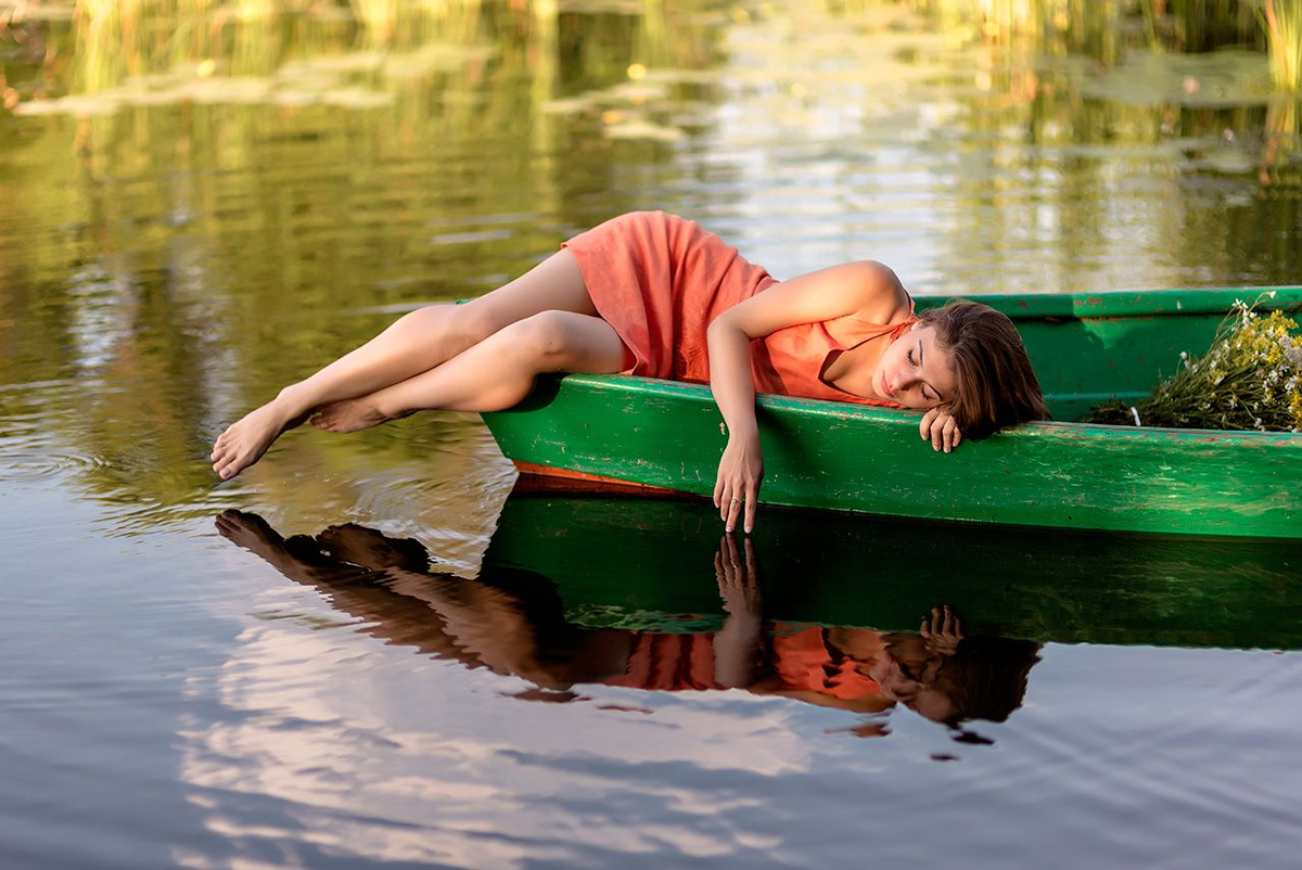 Ее стихия — вода. С самого детства она не боялась ни омутов, ни глубины, и река знает ее в лицо. Она приходит на берег, когда солнце в зените, и ныряет в прохладную гладь, словно русалка, выпущенная на волю из подводного царства. Кожа ее отливает перламутром, на ней никогда не бывает загара, словно вода ревниво прячет ее от палящих лучей. Она знает, где водятся раки, где стоит щука, и какой омут таит в себе опасность. Красота ее — дикая, свободная, неподвластная законам суши. Волосы вечно влажные, темные, как илистое дно, и в них запутываются мелкие чешуйки и травинки. Она может часами сидеть на мостках, болтая ногами в воде, и смотреть на течение, и в этом занятии нет ни капли праздности — она слушает, о чем говорит река, узнает новости, которые принесла вода из далеких краев. В городе такую девушку назвали бы странной, может быть, даже «не от мира сего», но здесь, в деревне, она — просто дочь реки, такая же естественная, как камыш у берега. Она не носит украшений, кроме нитки речного жемчуга, найденного когда-то в ракушке, и этот жемчуг тускло мерцает на ее загорелой шее, соперничая с брызгами воды. Она не любит суеты и шума, предпочитая им шелест волн и крики чаек. Мужчины, приезжающие из города на рыбалку, теряют дар речи, когда видят ее, выходящую из тумана на рассвете с ведром, полным улова. Она кажется им видением, миражом, но она реальна, и реальность эта грубовата: она может огреть веслом незадачливого ухажера, перепутавшего берега, и тут же, засмеявшись, прыгнуть с разбегу в воду, подняв тучу брызг, алмазно сверкающих на солнце. Ее походка — это плавное покачивание на волнах, даже когда она идет по твердой земле. В ее глазах — глубина и тайна, та самая, что манит и пугает, тайна, которую хранит в себе каждая река, текущая к морю. Она не становится красивой — она рождается такой каждый миг заново, выныривая из воды обновленной, чистой, вечно юной.