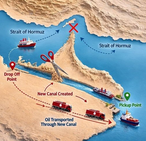 Бурная деятельность Трампа на Ближнем Востоке привела к тому, что разговоры о возможном нефтяном кризисе звучат всё громче. Когда вокруг Ормузского пролива снова становится тревожно, сразу начинают всплывать разные «альтернативные» идеи. Одна из них - построить канал в обход Ормуза, чтобы танкеры могли выходить в Аравийское море, минуя этот узкий и уязвимый участок. Насколько это вообще реально? Давайте посмотрим на мнение одного пользователя Quora, который попытался разобрать этот проект с точки зрения географии, инженерии и политики. Эр. Рагхав, Индия Ормузский пролив, расположенный между Персидским заливом и Аравийским морем, является одним из важнейших морских маршрутов в мире. Через этот узкий водный путь проходит значительная часть сырой нефти, добываемой на Ближнем Востоке, которая затем отправляется во многие страны, включая государства Азии и Европы. Около 20 % всей мировой нефти транспортируется именно этим маршрутом. Сейчас, на фоне роста напряжённости и военных событий на