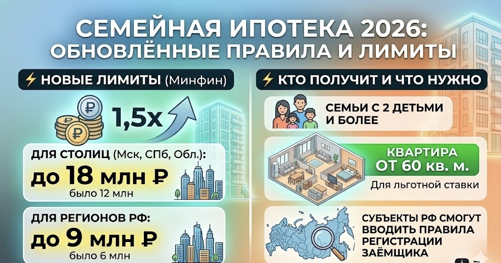 Семейная ипотека 2026: Лимиты 18 млн рублей и «метражный» ценз. Разбираем новые правила от Минфина