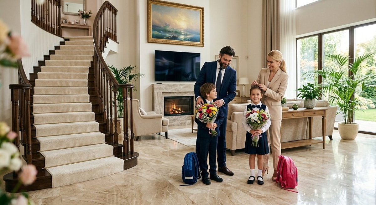 Закрываю дверь — не просто щёлкаю замком, а делаю это медленно, плавно, почти ритуально. Ладонь на прохладной поверхности двери задерживается на мгновение дольше, чем нужно. В голове проносится мысль: «Вот он — момент перехода. Вчера они были малышами, а сегодня — школьники. Новый этап, новая глава».