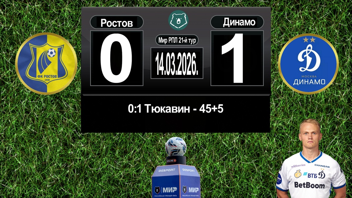 Середина тайма прошла в напряженном равновесии, без ярких моментов. Обе команды демонстрировали осторожность, стараясь не допустить ошибок. Только на 72-й минуте ростовчане снова потревожили Расулова: Кучаев мощно пробил издали, и молодой вратарь "Динамо" сумел парировать удар, предотвратив гол.