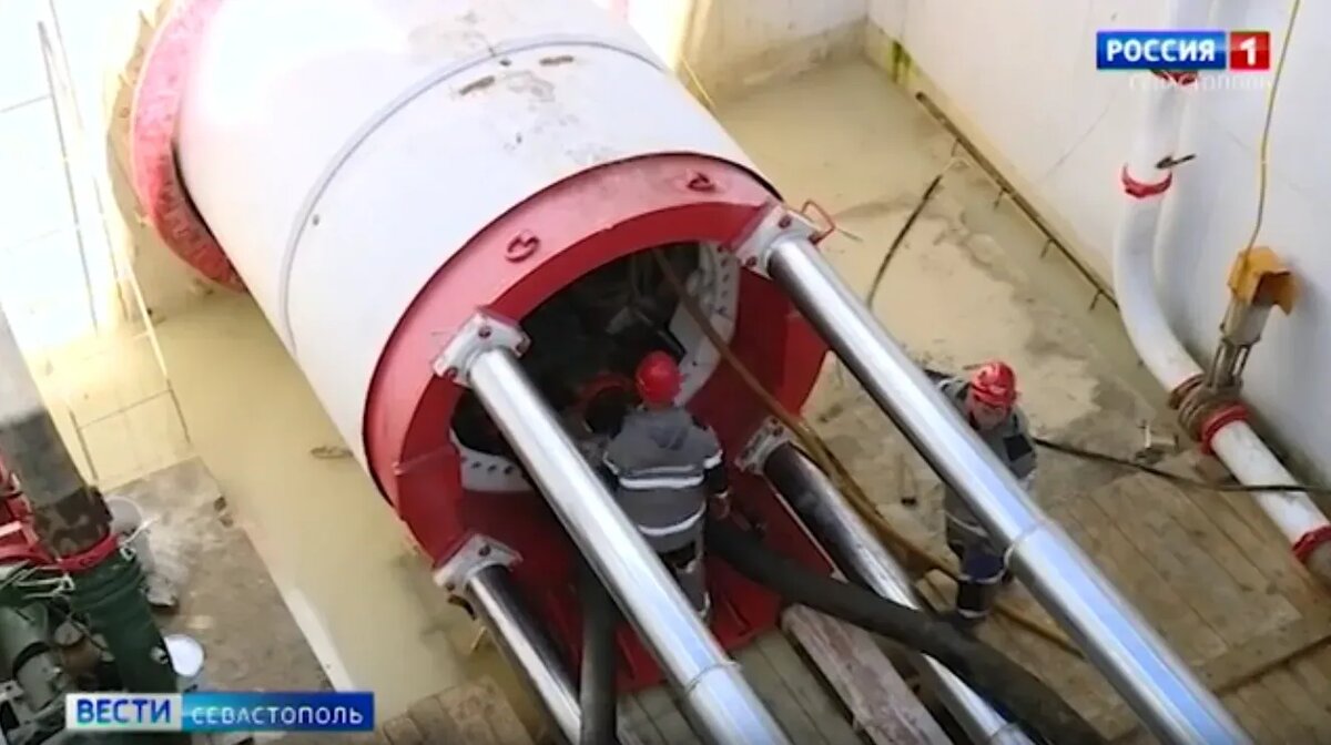 Уже двенадцать метров трубы уложили в тоннель строители Балаклавского канализационного коллектора. На это потребовалась неделя — ведь прокладывают магистраль сквозь скалу. Как работает этот комплекс — эксклюзивно нашему телеканалу сегодня показали инженеры прямо на площадке. Репортаж Ростислава Колмагорова. Этот отрезок Балаклавского канализационного коллектора — самый сложный в инженерном смысле. Строительная площадка находится в Сарандинакиной балке — и магистраль прокладывают в толще скалы. «Один Мегаватт электроэнергии выдаёт данная дизельная электростанция. Она, в свою очередь, может питать целый микрорайон города», — рассказал руководитель проекта Тихон Сердюков. Такая мощность нужна чтобы построить тоннель, длиной целый километр и два метра в диаметре. Проходческий щит сверлит скалу, а перемолотая порода вымывается водой на поверхность. Домкраты толкают вперёд всю систему. Её монтируют прямо по ходу движения. «Подаётся железобетонная труба, секция у неё три метра. Одна зашла — с